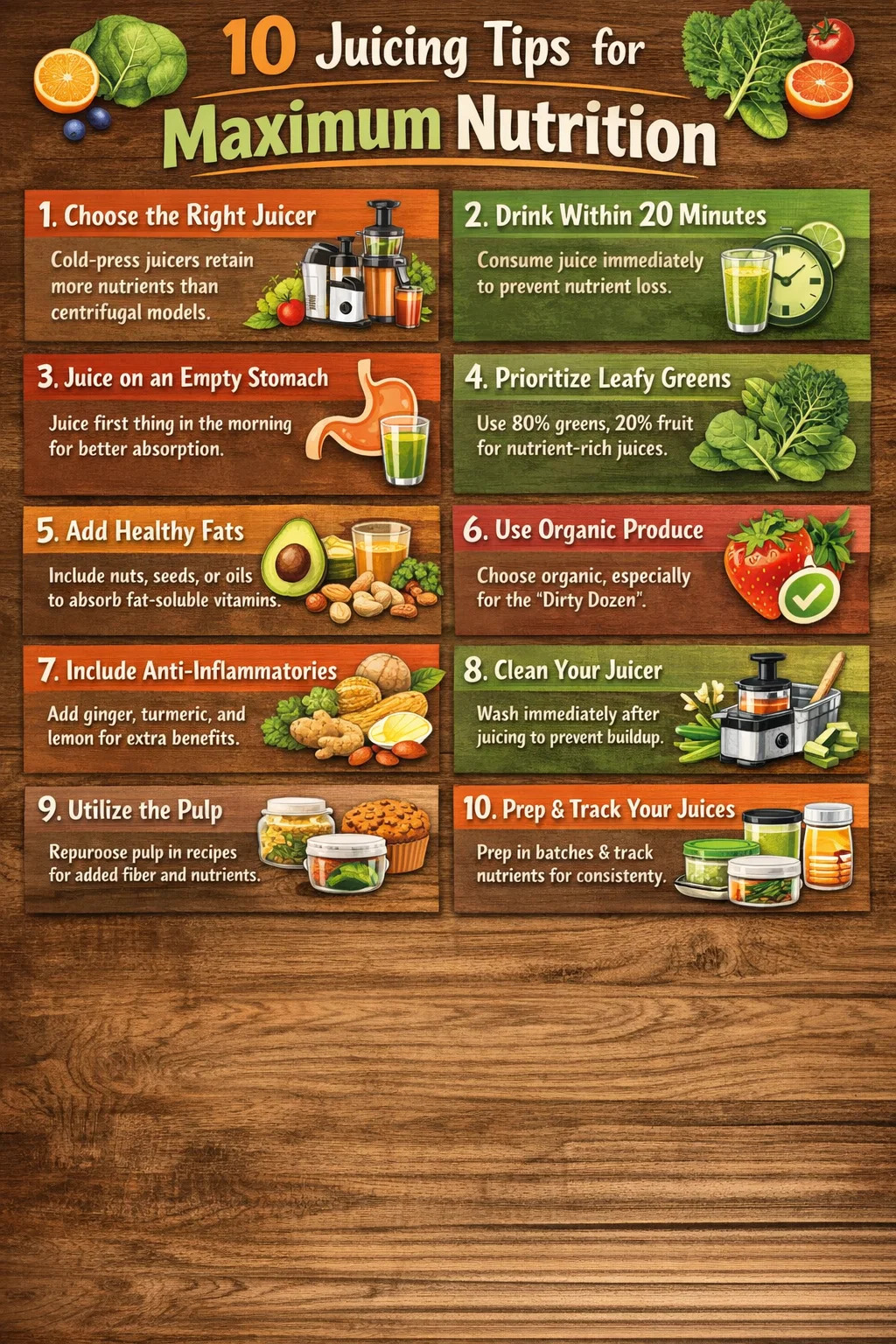 Si vis maxime nutritionem ex omni vitro obtinere, sic uteris rebus tuis sucis aeque ac immissis. Frigidus premens, humilis celeritate, ieiunus succidens, et potus intra XX minuta destillationis nutrimentum effusio notabili margine augere potest. Hae tweaks minores non sunt - differentiae sunt inter vitreum liquoris saccharo et potus sanitatis vere utilitatis. Decem apicibus inferius fundantur in scientia cibi et usu reali mundi suci, et adhibent utrum suco centrifuga, vel succo mandendo, an torcular gemino utaris.
